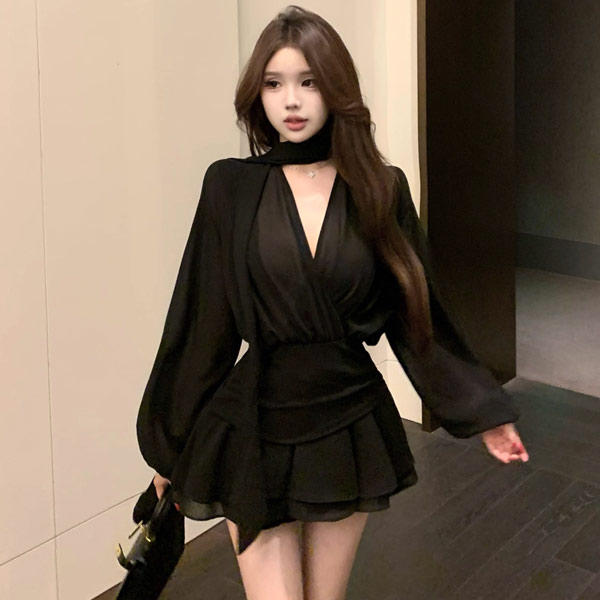 性感背交叉居家服長版睡衣(有胸墊.可外出)