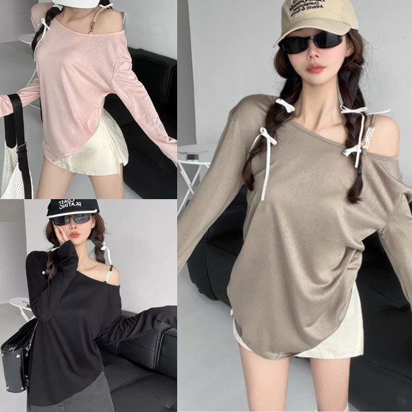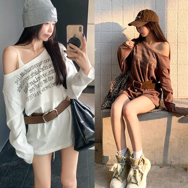 慵懶薄款字母寬鬆上衣(附腰帶)