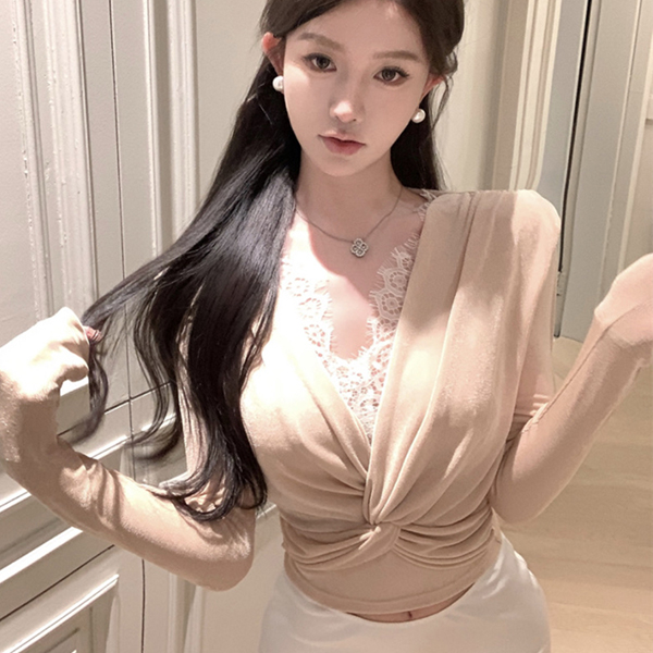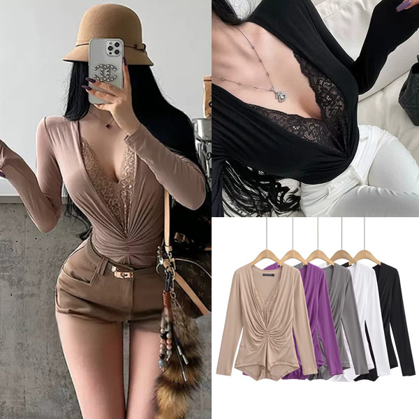 性感深V波紋細肩帶背心上衣(附罩杯)
