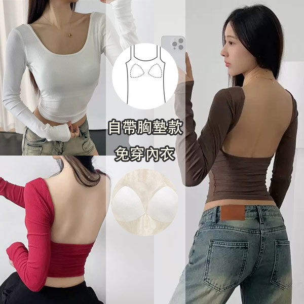 大露背加厚胸墊上衣(有罩杯可直接單穿)