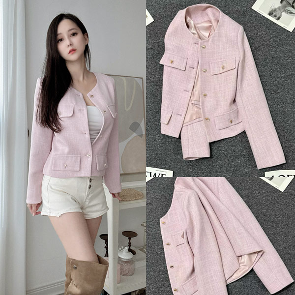 帥氣立領/翻領短版外套+金釦短裙(褲型內裡)