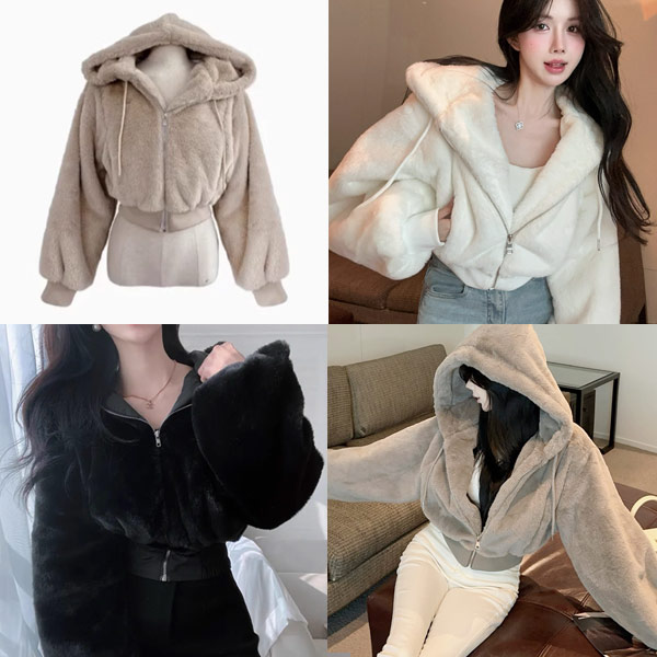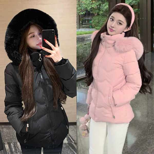 休閒辣妹風大毛毛連帽加厚棉質外套