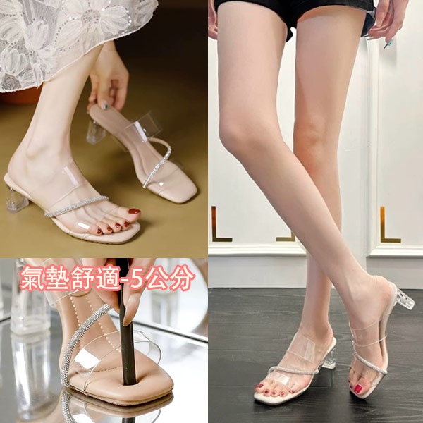 5公分|長腿透明水鑽高跟涼鞋拖鞋