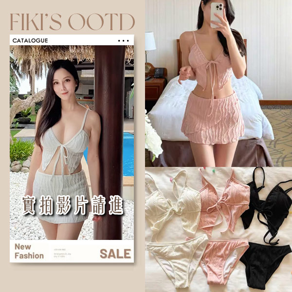 5折-戀愛感比基尼三件組泳裝(可當外出服)-現貨