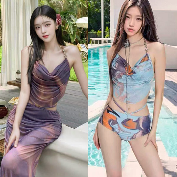美人魚傳說渲染紗裙比基尼泳衣-三件式泳衣-現貨