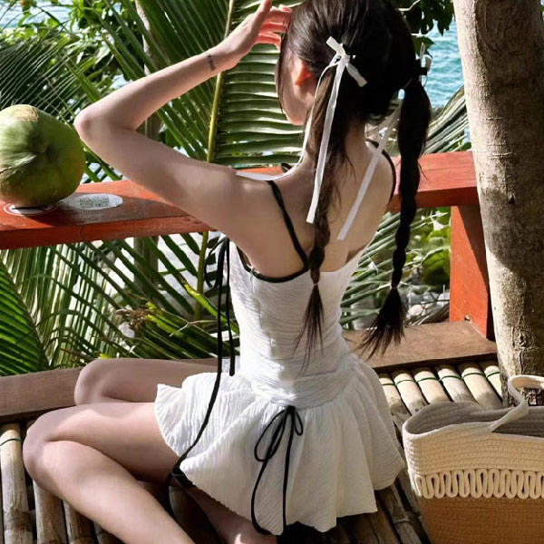 5折-海島渡假白色系比基尼泳裙三件組-現貨