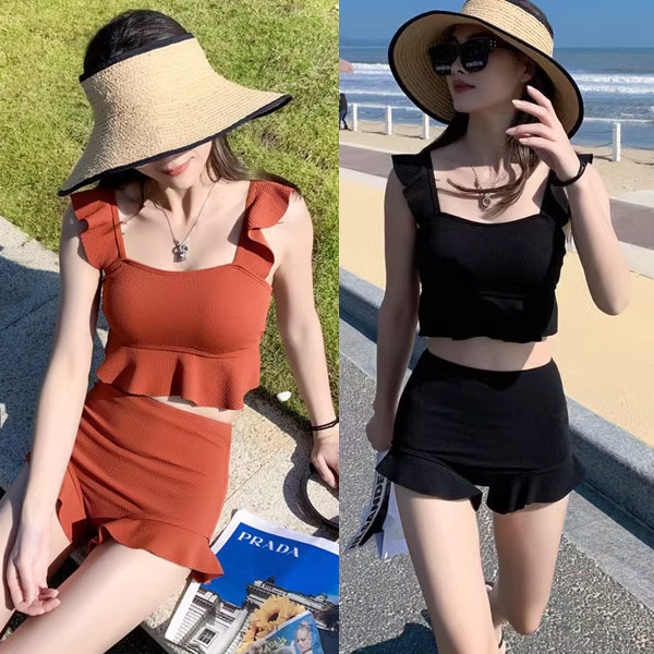 海島貝殼傘狀遮肚泳衣+泳褲=2件式-現貨