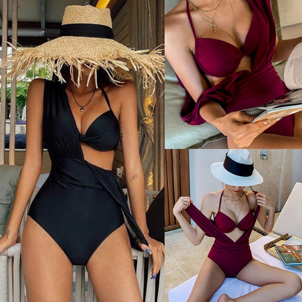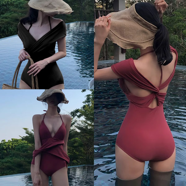 5折-性感交叉修身遮肚連身泳衣-現貨