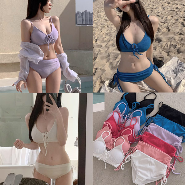 性感渡假沙灘毛巾布比基尼泳衣-現貨