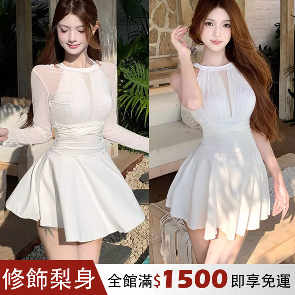 修飾梨形身材|遮臀傘狀連身泳衣+網紗罩衫=兩件式泳衣