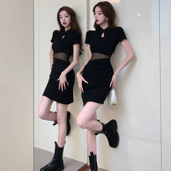 性感新中式|旗袍領網紗洋裝