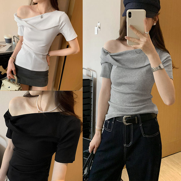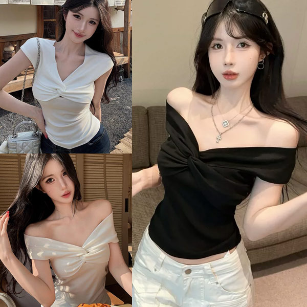 悸動瞬間|露肩V領兩穿法扭結上衣