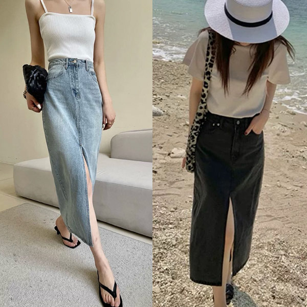 開岔水洗刷舊牛仔長裙