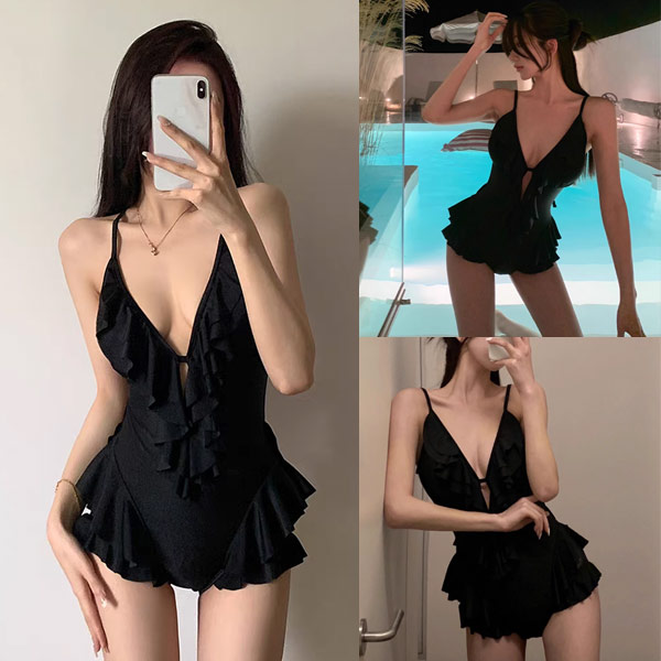 性感前開深V遮肚連身泳衣
