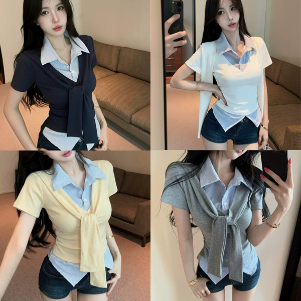 時髦領結假兩件式上衣