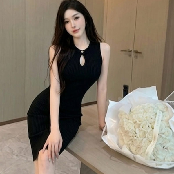 名媛感針織中長裙洋裝