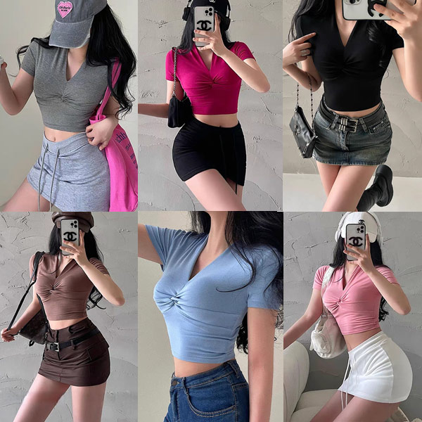 甜蜜夏日短版露腰扭結上衣
