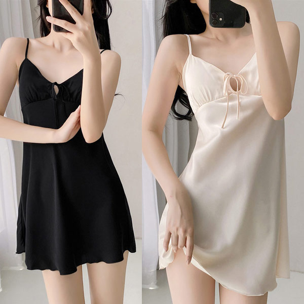 夜晚氛圍性感蕾絲緞面睡衣(有可拆胸墊)
