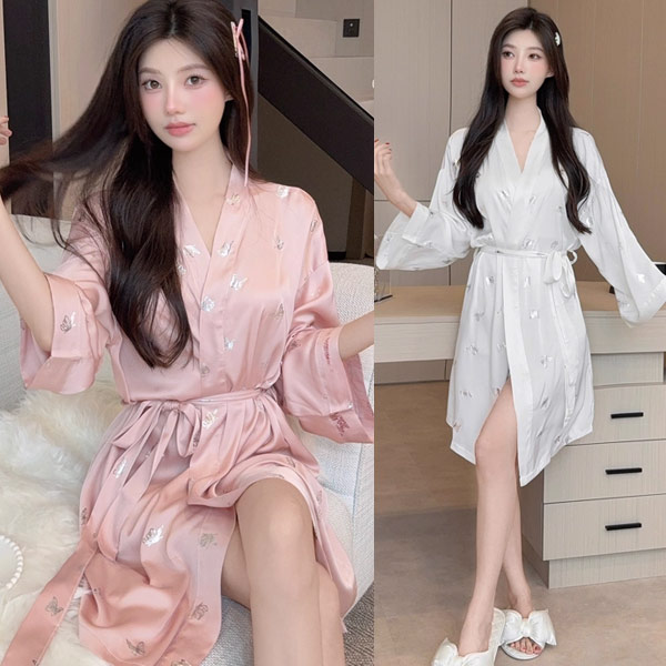 性感儀式感|燙銀蝴蝶緞面睡袍