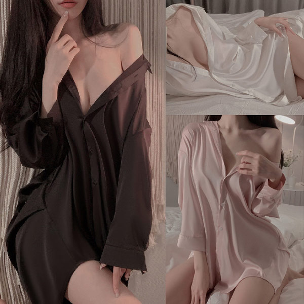 BF男友風寬鬆絲滑緞面襯衫睡衣