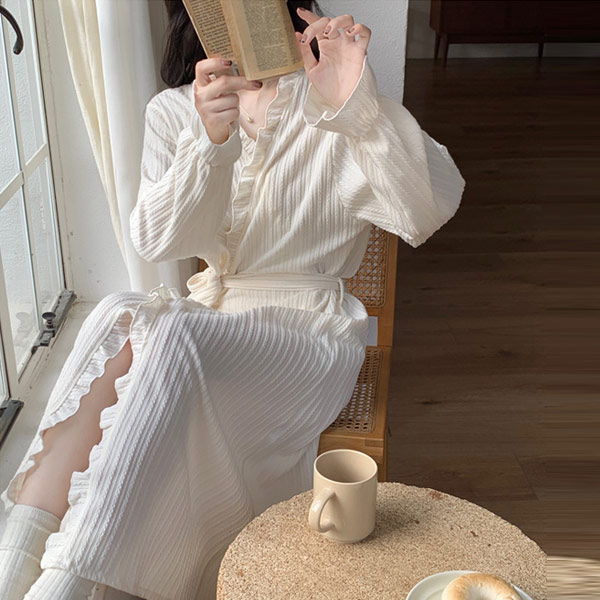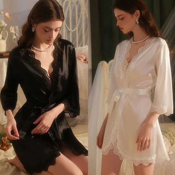 法式儀式感貴婦優雅仿絲質蕾絲睡袍
