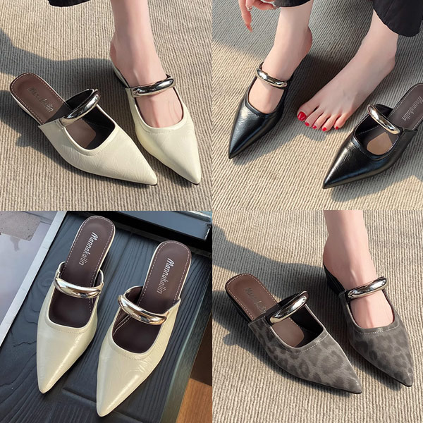 5折-氣質麂皮質感珍珠尖頭拖鞋-現貨