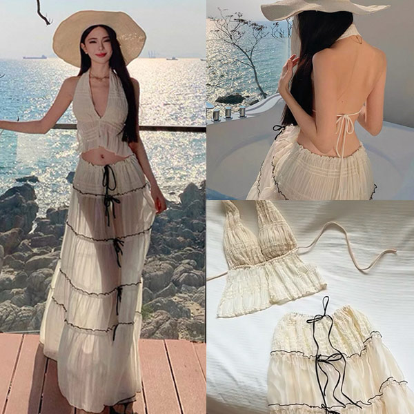 5折-戀愛感比基尼三件組泳裝(可當外出服)-現貨