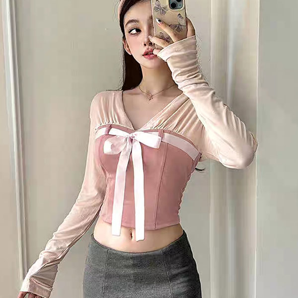 5折-芭蕾拼接短版露肚上衣-現貨