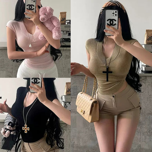 5折-短版露肚小可愛上衣(有胸墊)-現貨