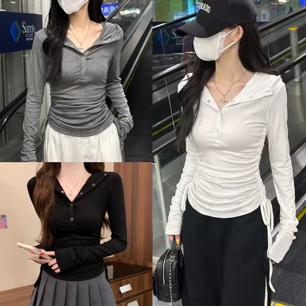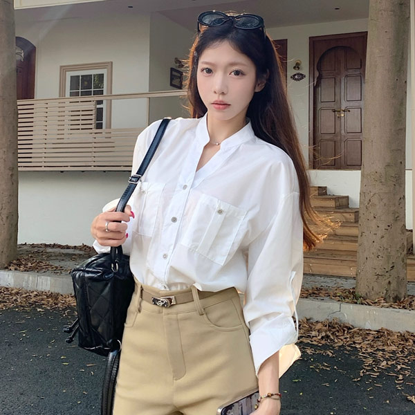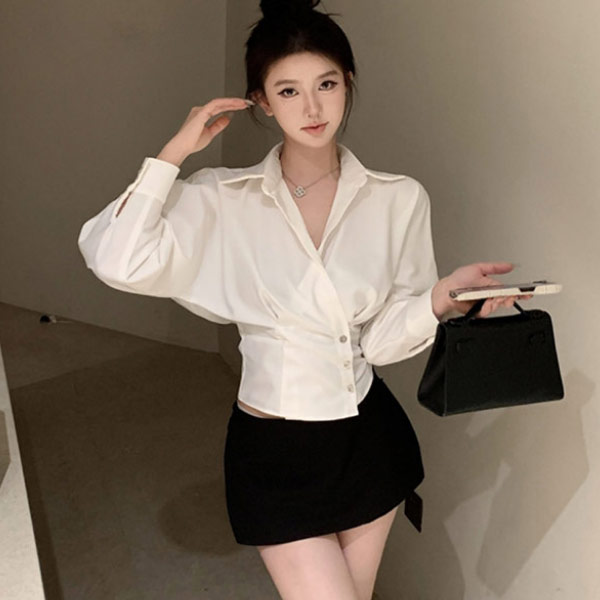 設計感OL寬鬆袖收腰襯衫上衣-現貨