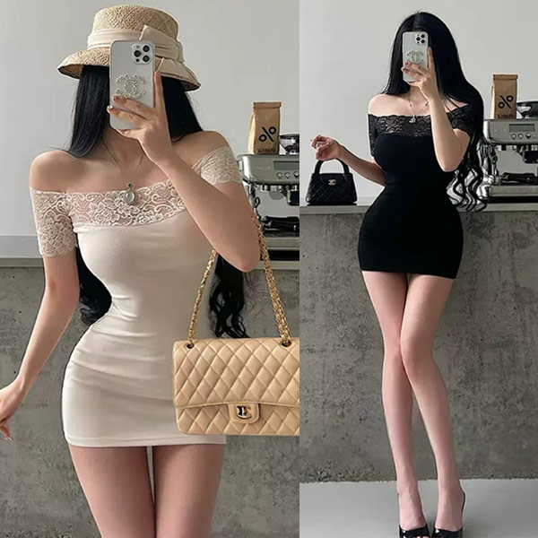 5折-性感蕾絲露肩假兩件式短版上衣-現貨