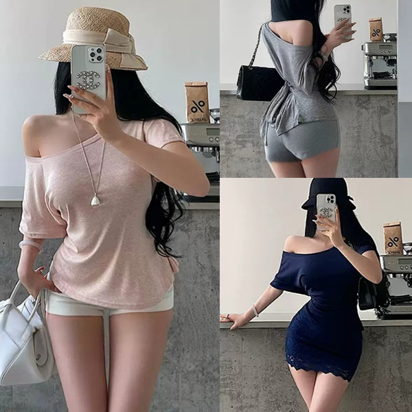 寬鬆露肩蝙蝠袖遮肚上衣-現貨
