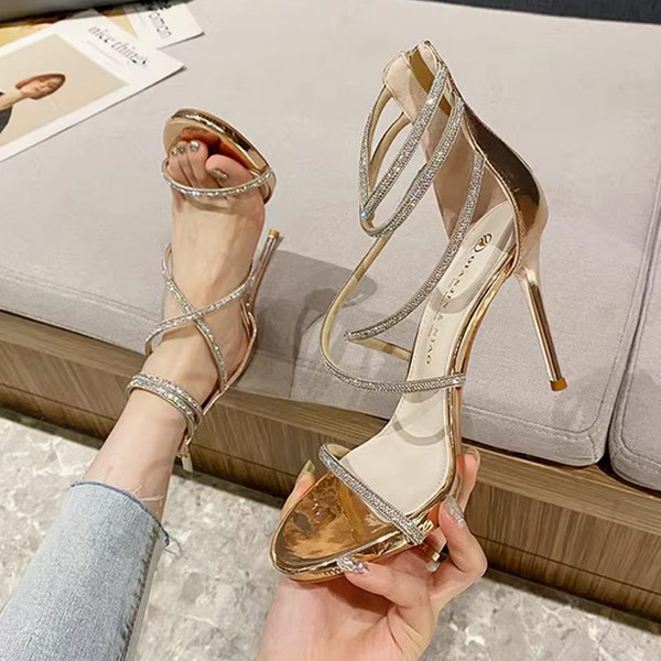 性感夜店水鑽羅馬高跟鞋涼鞋-現貨