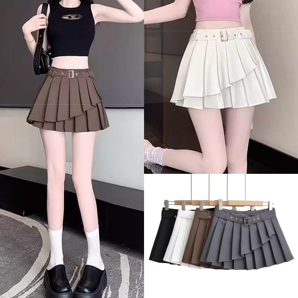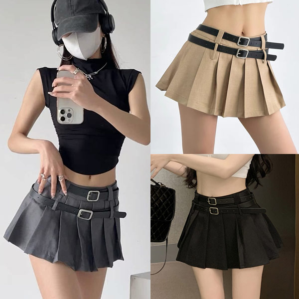 5折-辣妹學院風超短百褶裙(褲型內裡.附腰帶)-現貨