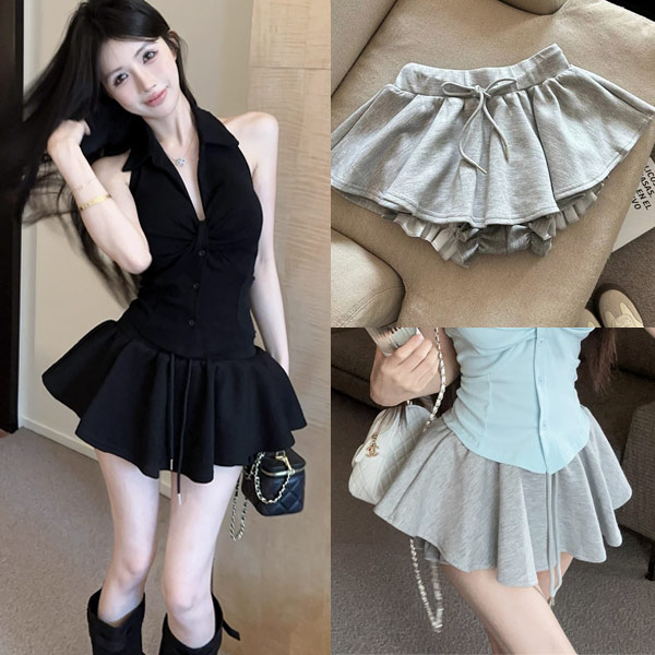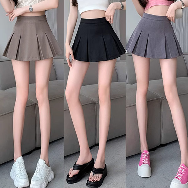 韓女團拉腿長高腰百褶裙.褲裙-現貨