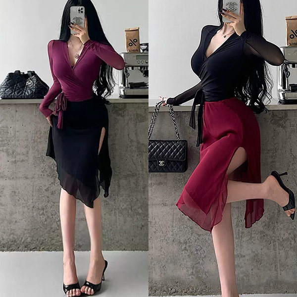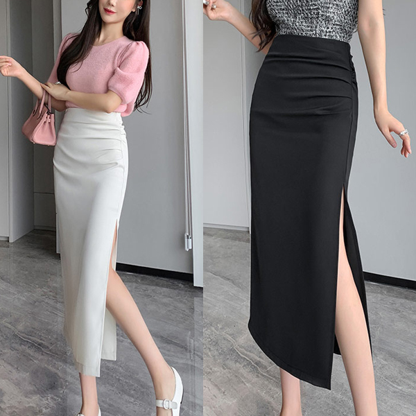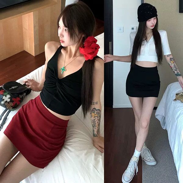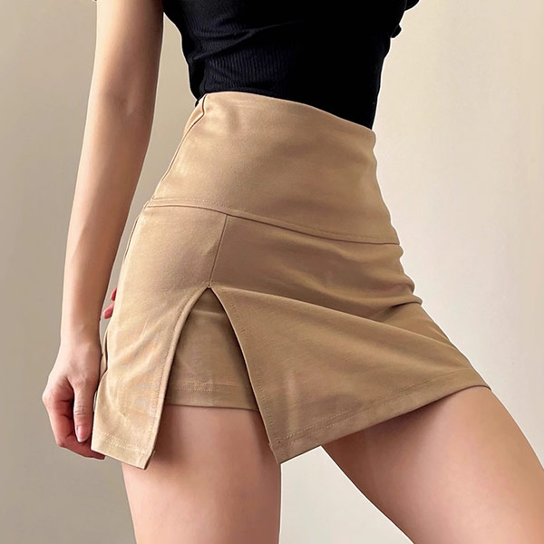 5折-性感開衩高腰A字短裙(內有褲子)-現貨