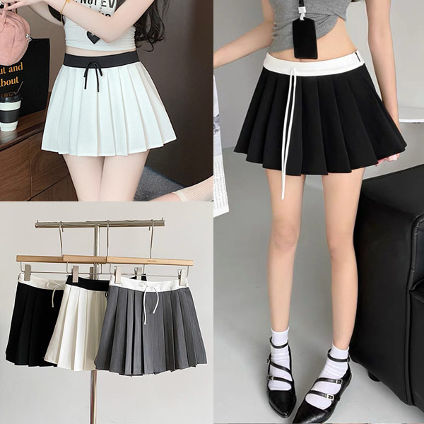 5折-甜心拚色百褶短裙(褲型內裡)-現貨