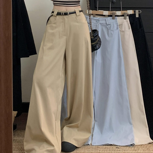 薄款瘦腿高腰寬鬆長褲寬褲-現貨