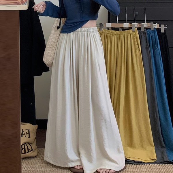 5折-涼爽慵懶棉麻寬褲長褲-現貨