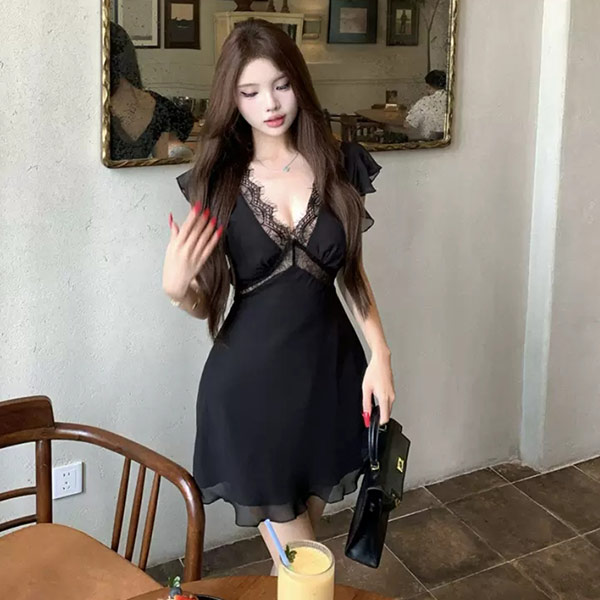 小性感蝴蝶鏤空傘狀針織洋裝-現貨